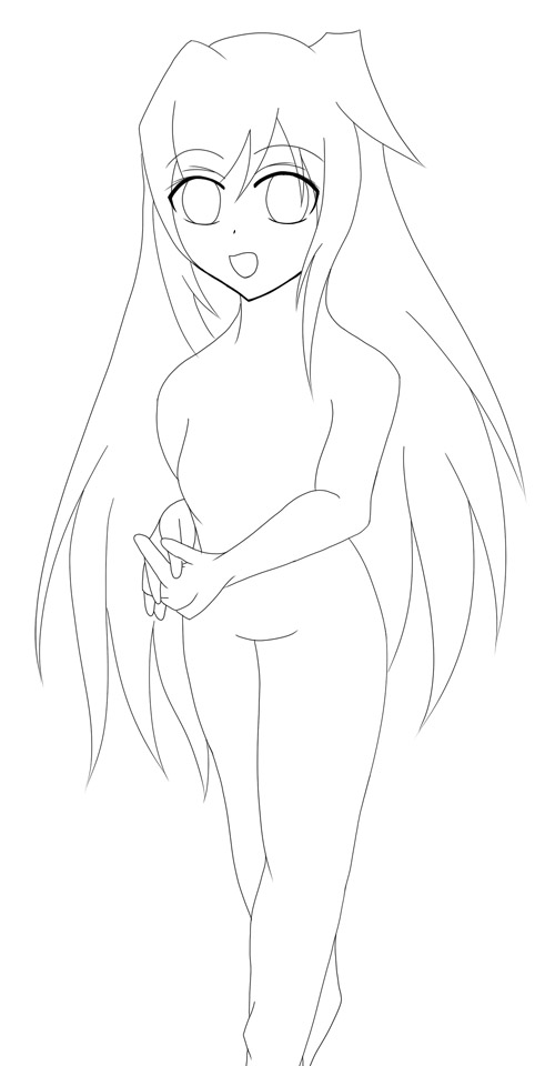 メインキャラの線画を書いてみたけどこの髪のタイプは初めて書くからどうやってぬればいいか解らん!!
